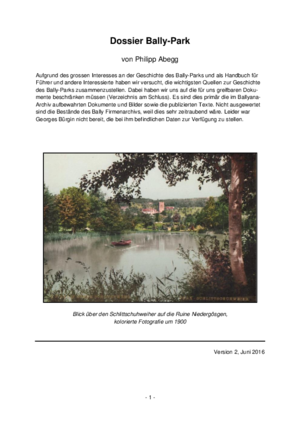 Detaillierte Informationen zum Park und zu seiner Geschichte können Sie dem Dossier Bally-Park mit Bildteil oder dem Kunstführer der Gesellschaft für Schweizerische Kunstgeschichte entnehmen: «Industrieensembles und Parkanlage «Bally» in Schönenwerd, Kanton Solothurn»; CHF 10.– zu beziehen bei Ballyana mittels Telefon oder Email.
